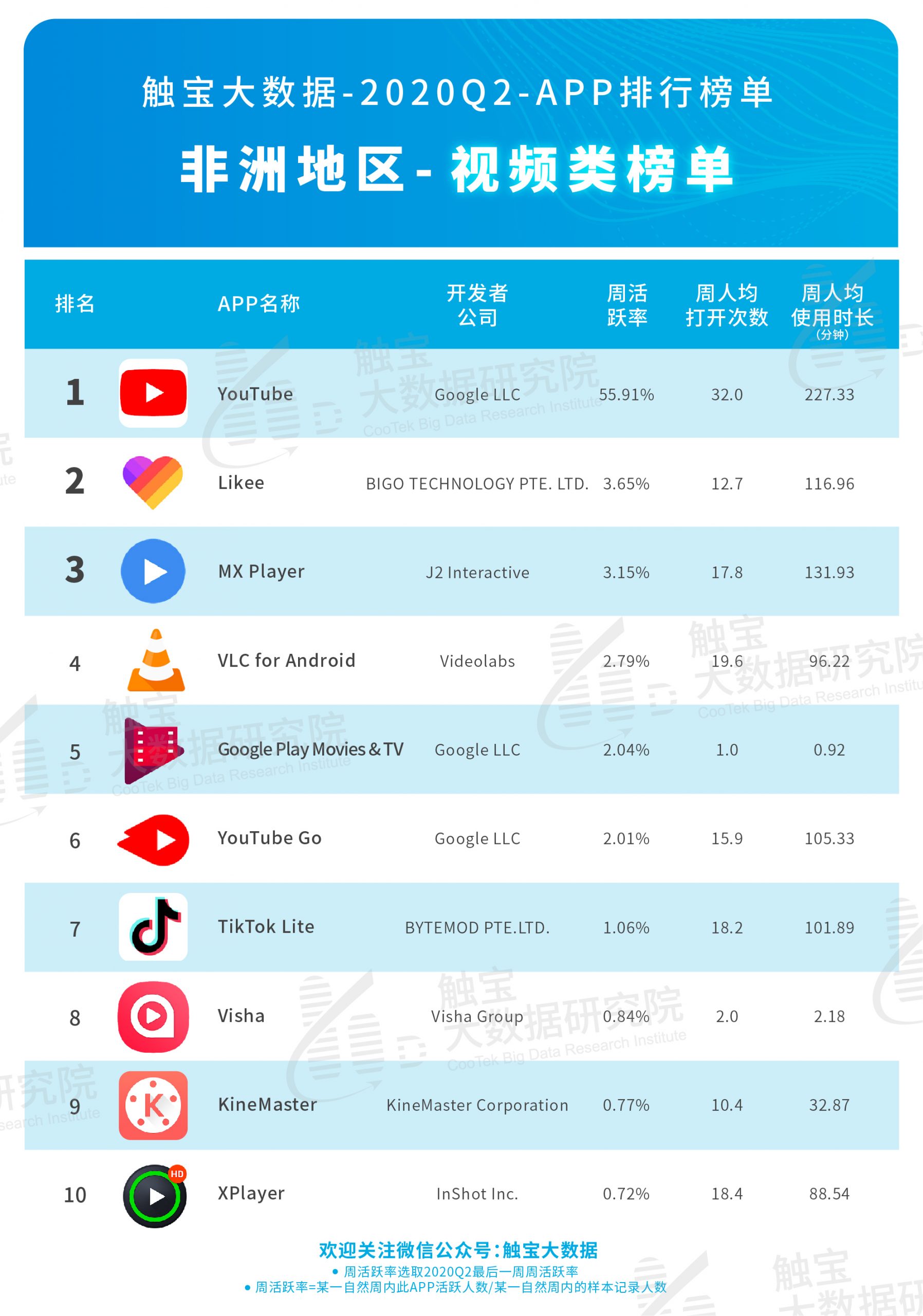 触宝大数据近来发布了2020Q2非洲商场APP排行榜。二季度期间,非洲商场相同处于疫情的重复阶段,线下流量及部分电商现在处于低谷期。在线上流量上升时当地用户关于使用内付费的志愿正在逐步提高,游戏、视频等泛文娱内容的供给也。此外触宝(NYSE:CTK)大数据研究院发现,短视频使用仍然是当地正在增加的文娱方法之一,关于用户来说怎么低门槛的参加到拍照制作和共享中,是渠道成功的要害。